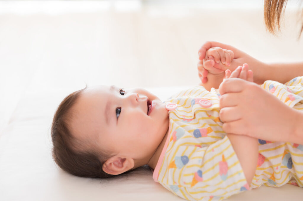 赤ちゃんのカラダに直接触れることでコミュニケーション・発育促進・ママ、パパへのリラックス効果など様々なメリットがあります。