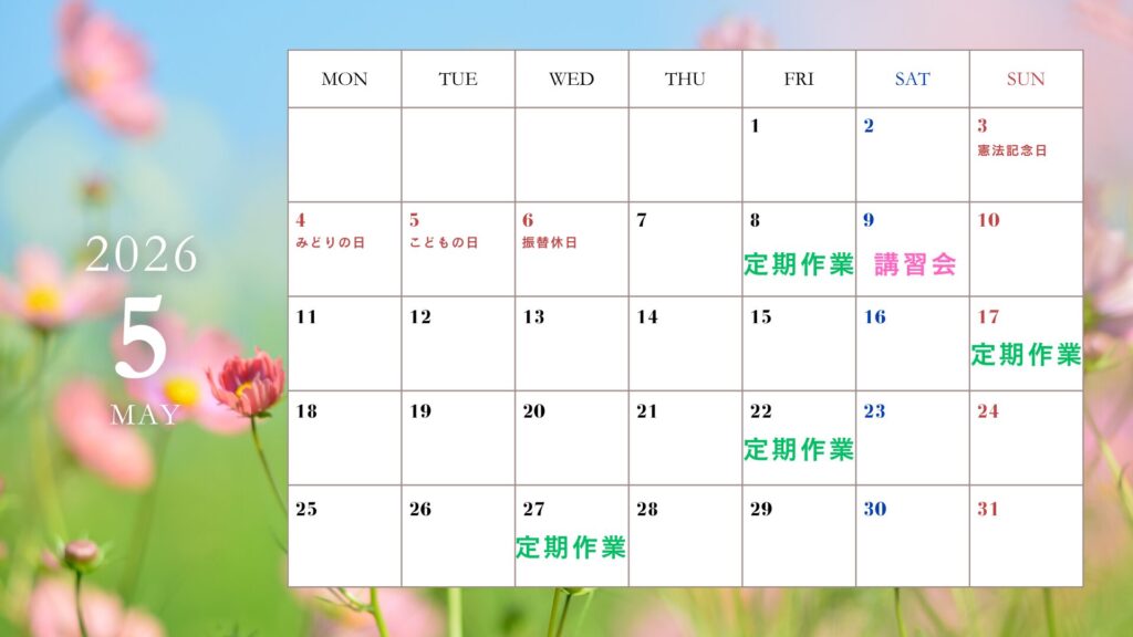 【つるまフラワーボランティア】5月の活動予定UP&講習会の申し込み開始しました