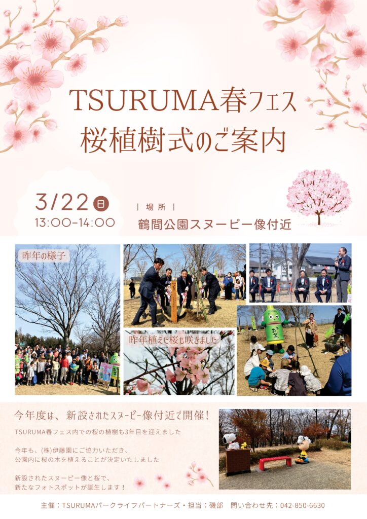 3月22日開催のTSURUMA春フェス内で、「お~いお茶」でお馴染みの伊藤園さんのご協力のもと、桜の植樹式を行います!