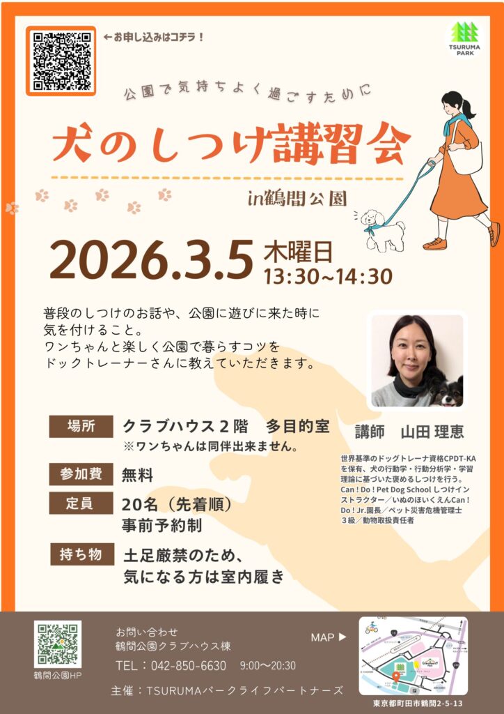 鶴間公園にて「犬のしつけ講習会」を開催します!