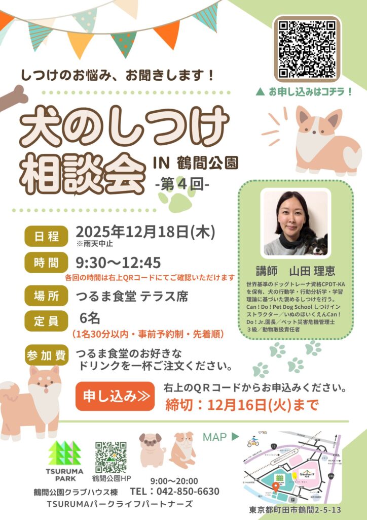 鶴間公園にて「犬のしつけ相談会」を開催します!